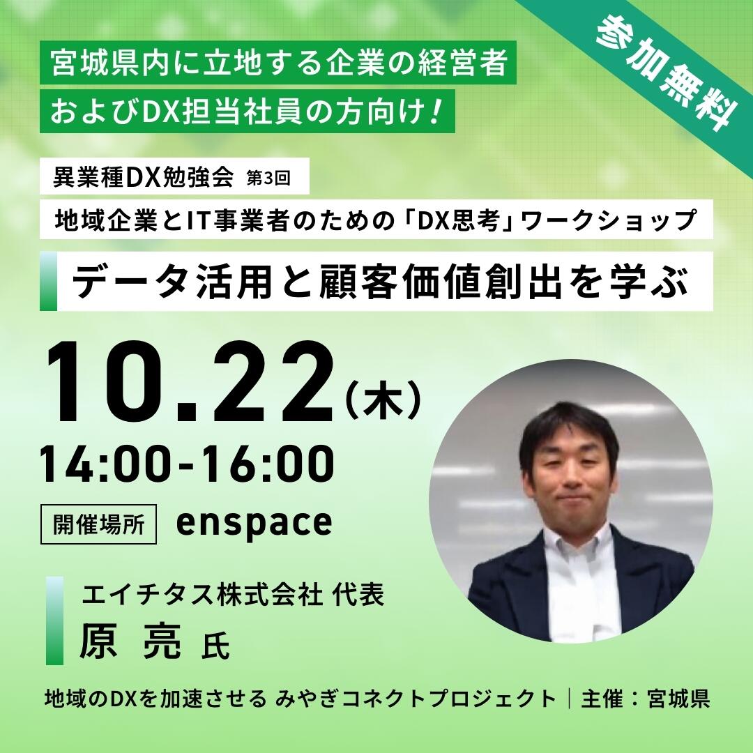 地域企業とIT事業者のための「DX思考」ワークショップ 第3回「データ活用と顧客価値創出を学ぶ」【宮城県】
